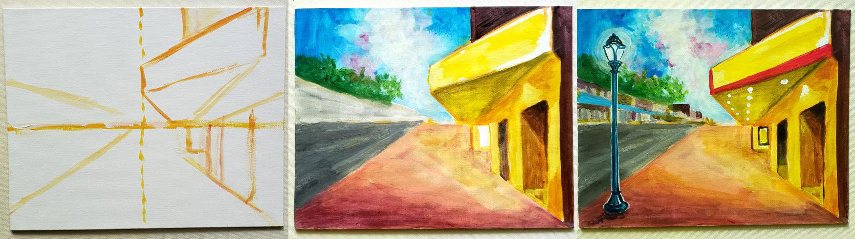 In this guided painting class led by local artist and educator Brooke Steytler, participants will create a whimsical Colonial Theatre street scene, following a structured three-step process. Each step builds upon the last, transitioning from a chalk sketch to a final painting.